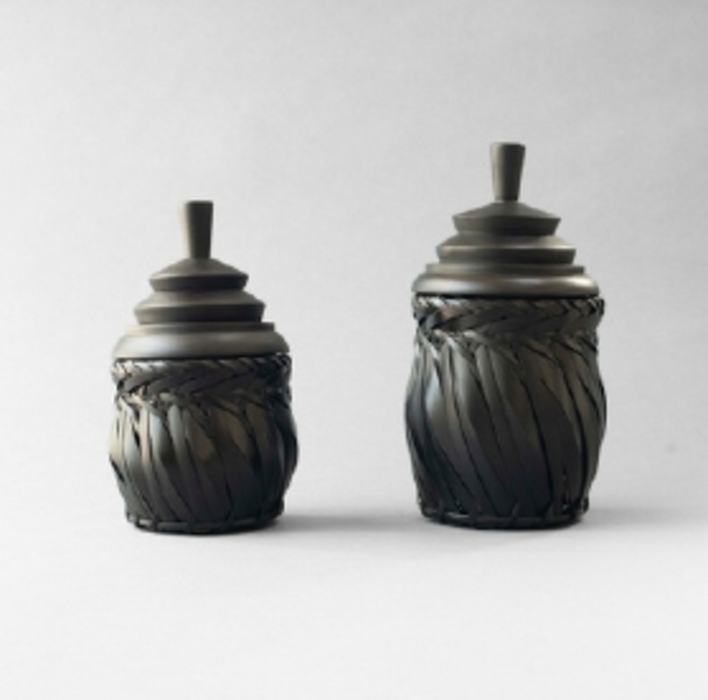 “Moh-Than” is an art of weaving from big bamboo strips, practices on the coast line of Thailand. The bamboo container combines with a Lathed Wood lid in geometrical shape, create a stunning luxury and elegant form. A rare weaving technique and elegant wood lid has become a combination of both artistic and functionality, a collectible design object.