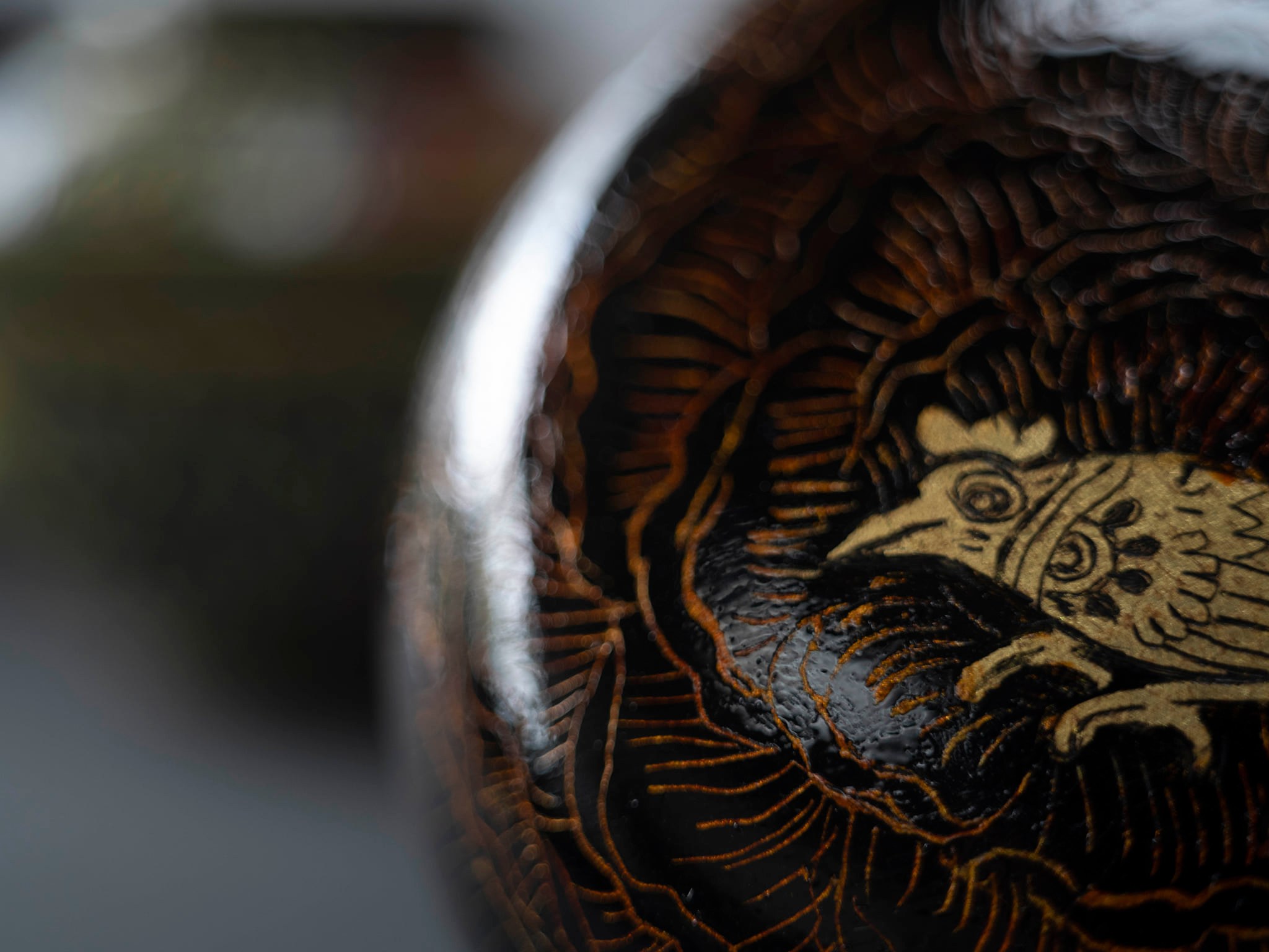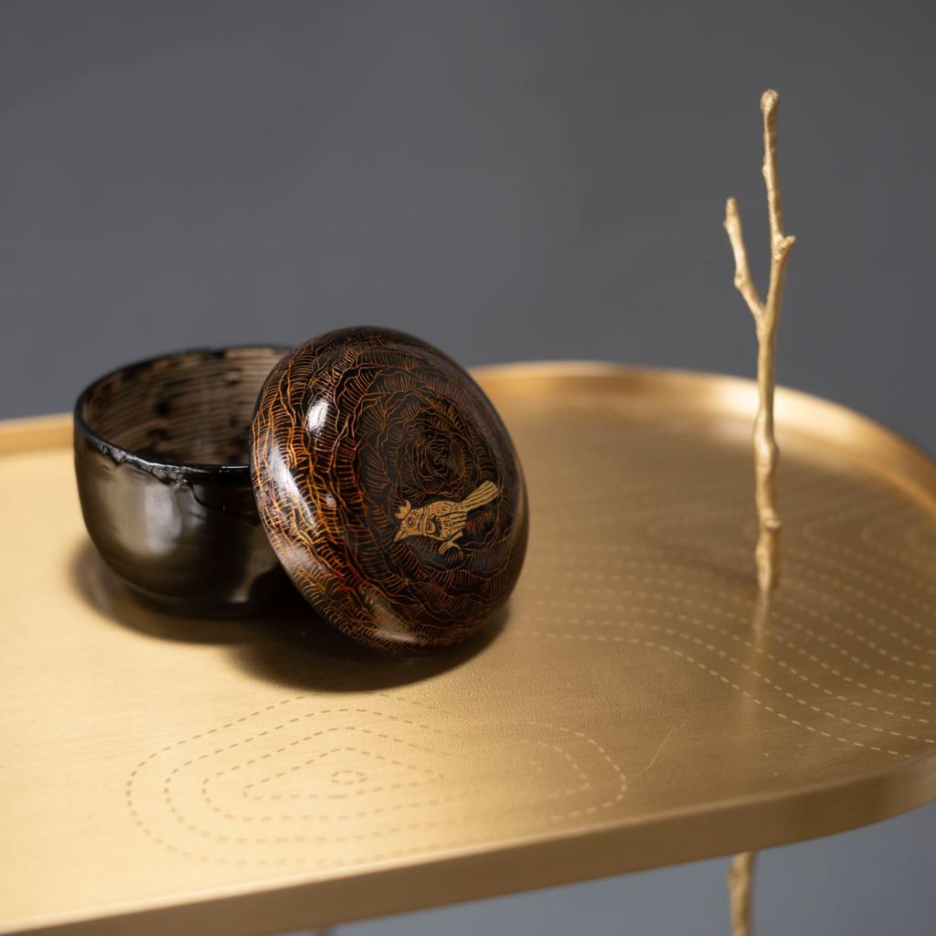 Inspired by Lanna engraved lacquer motifs found in Northern Thai temples, including Wat Phra Singh in Chiang Mai. The technique parallels Maki-e, where designs are incised into lacquer and filled with gold or silver powder before being sealed with additional lacquer layers.